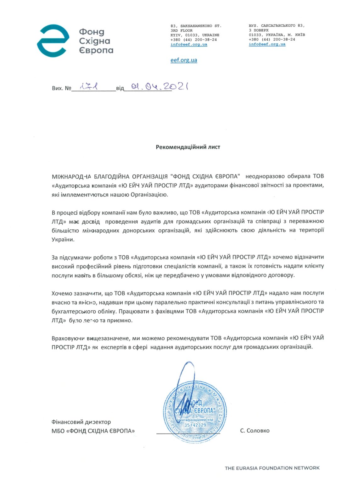 We are part of the UHY International, an international network. Leading world banks, stock exchanges, donor organizations and owners of middle and big companies rely on our auditor reports.
